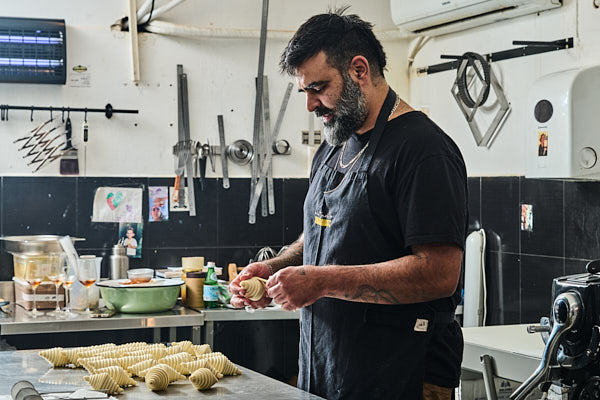 عَدي بيرتس، خبّاز وصاحب ماتاريلو: “كان لدينا 250 حجز في صبيحة 7 أكتوبر – ألغِيَت جميعها في الساعة التاسعة صباحًا. أغلقنا المقهى لمدة أسبوعين ونصف بينما تطوع الخبازون لتحضير المخبوزات للجنود الذين أرسِلوا إلى الجولان. عندما فتحنا المكان من جديد، قلّصت الطاقم من 25 عامل إلى ستة فقط. عمل المكان كمقهى take away حيث كان زبائننا الوحيدون هم من الجنود.